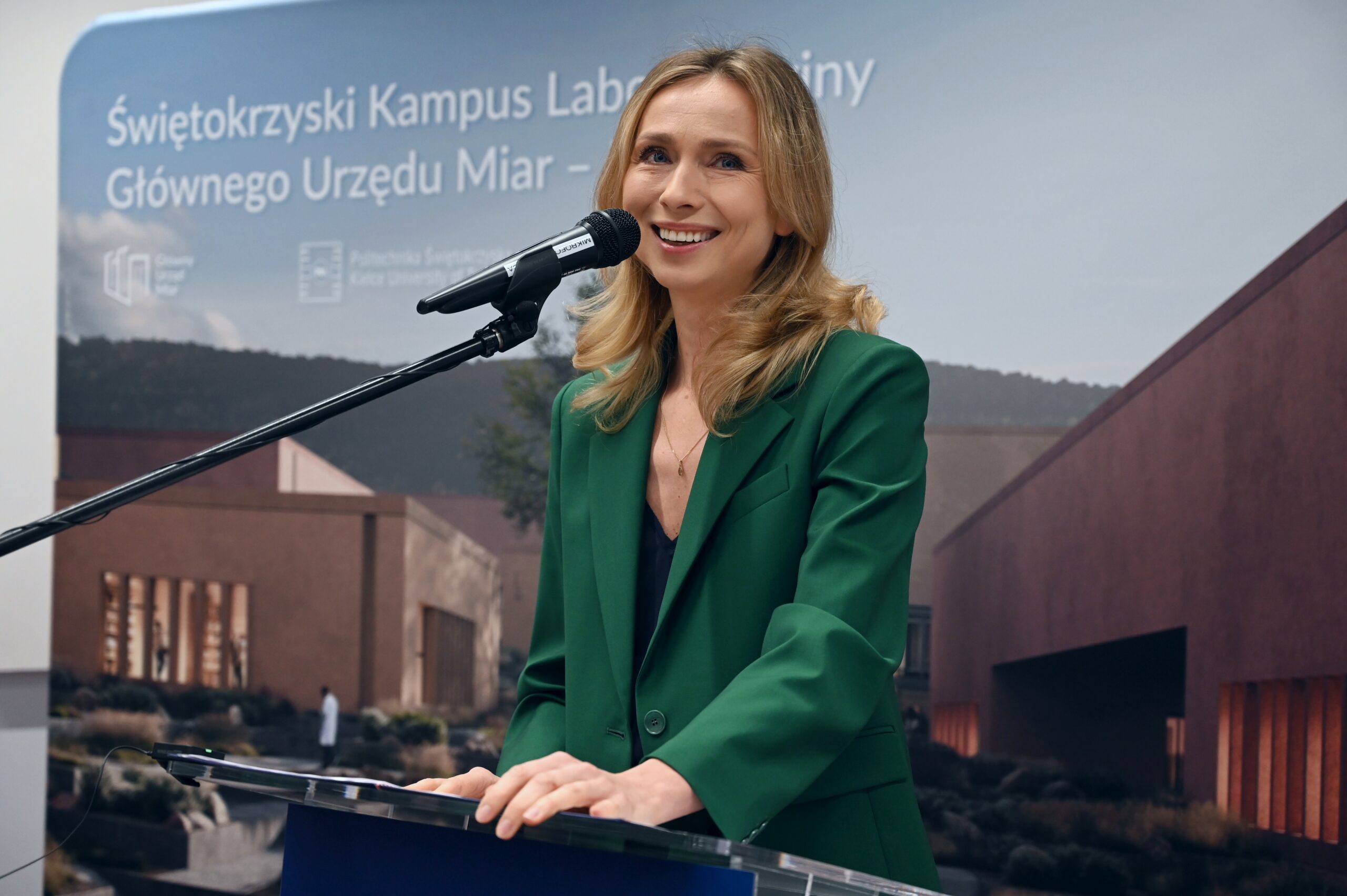Godło Polski oraz logotyp Głównego Urzędu Miar