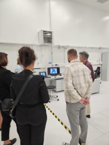 W spotkaniu uczestniczyła również Magdalena Fudala – broker technologii, która aktywnie wspiera współpracę między Kampusem GUM a Politechniką Świętokrzyską, oraz pan Janusz Janik, który pokazał gościom walory architektoniczne Kampusu: w tym specjalne posadowienie obiektu, wzmocnione i amortyzowane fundamenty, dzięki którym badania w Kampusie cechuje szczególna, nie spotykana gdzie indziej dokładność.